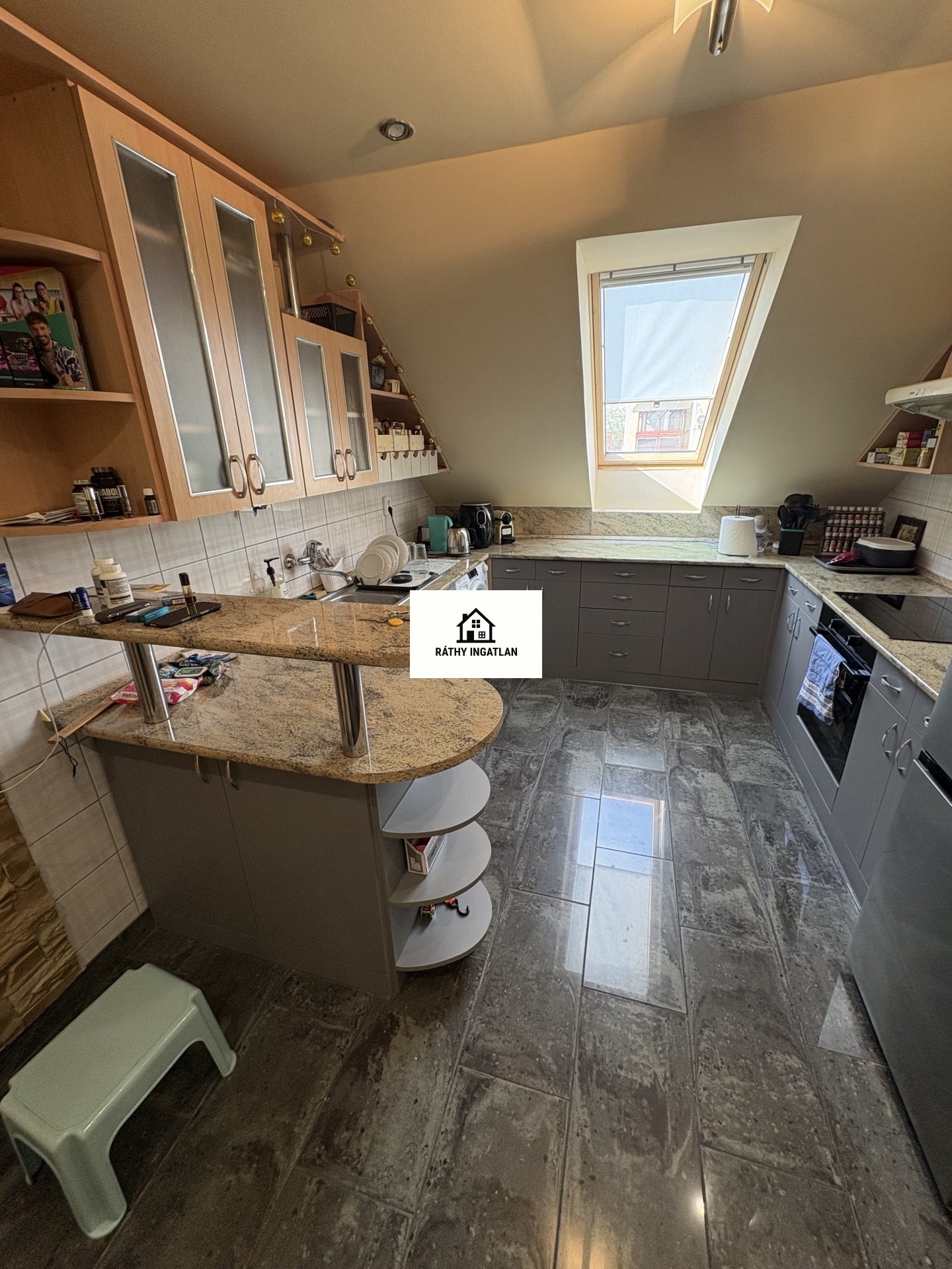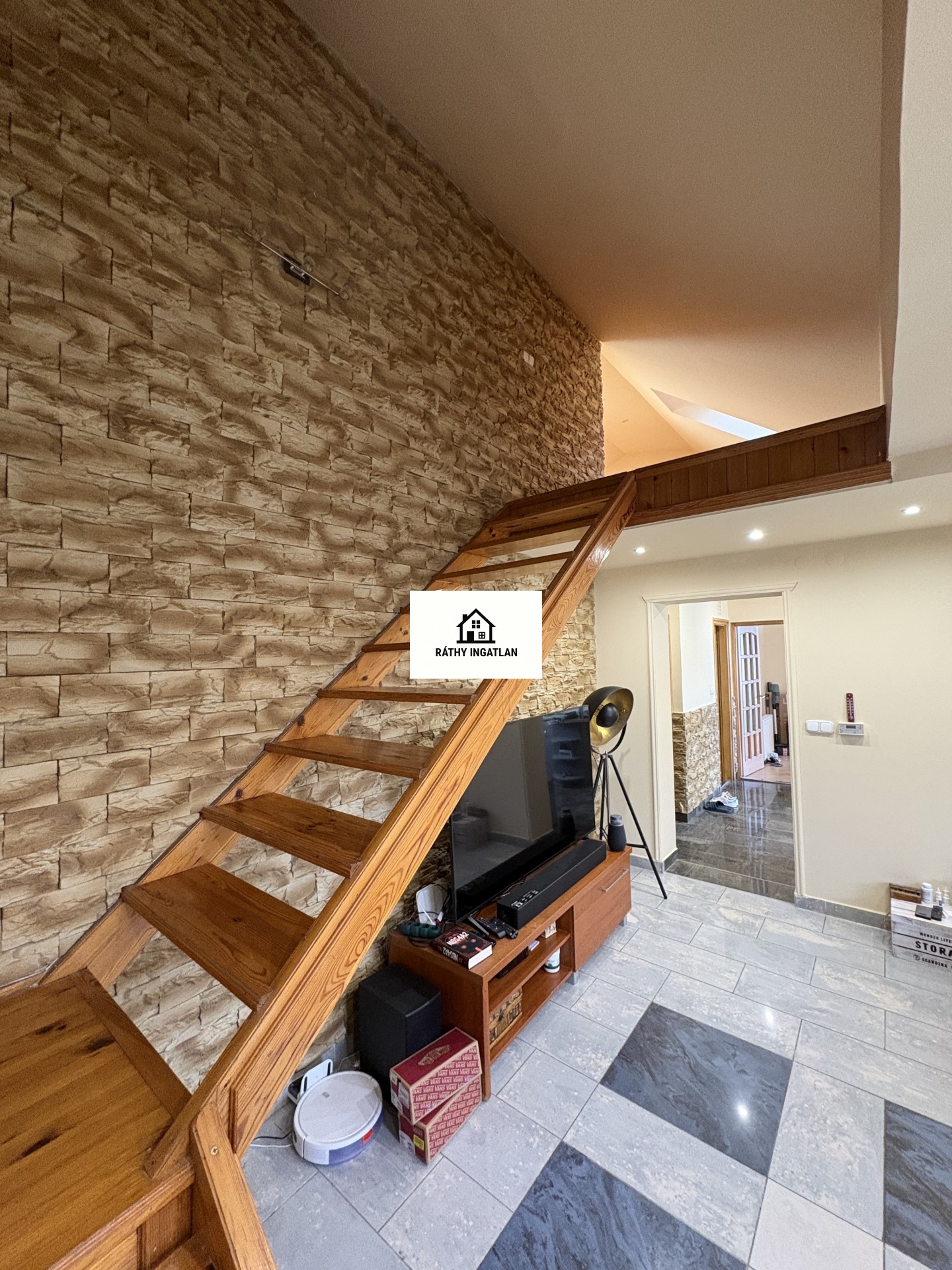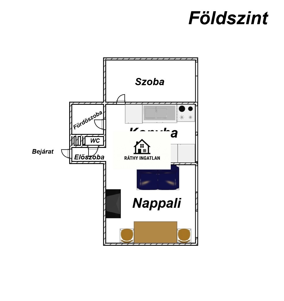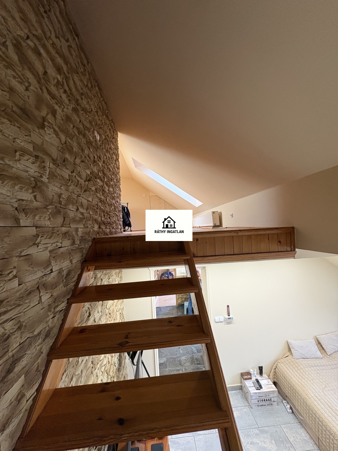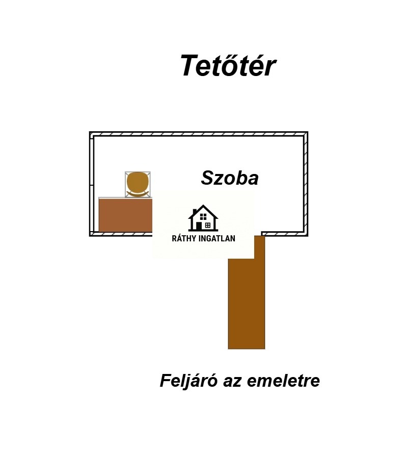 - Elosztása: Alsó szinten: előszoba, konyha, fürdőszoba+ Wc (külön helyiségben van ) nappali+ 1 szoba. Tetőtérben: 1 szoba van. Erkélye nincs a lakásnak.