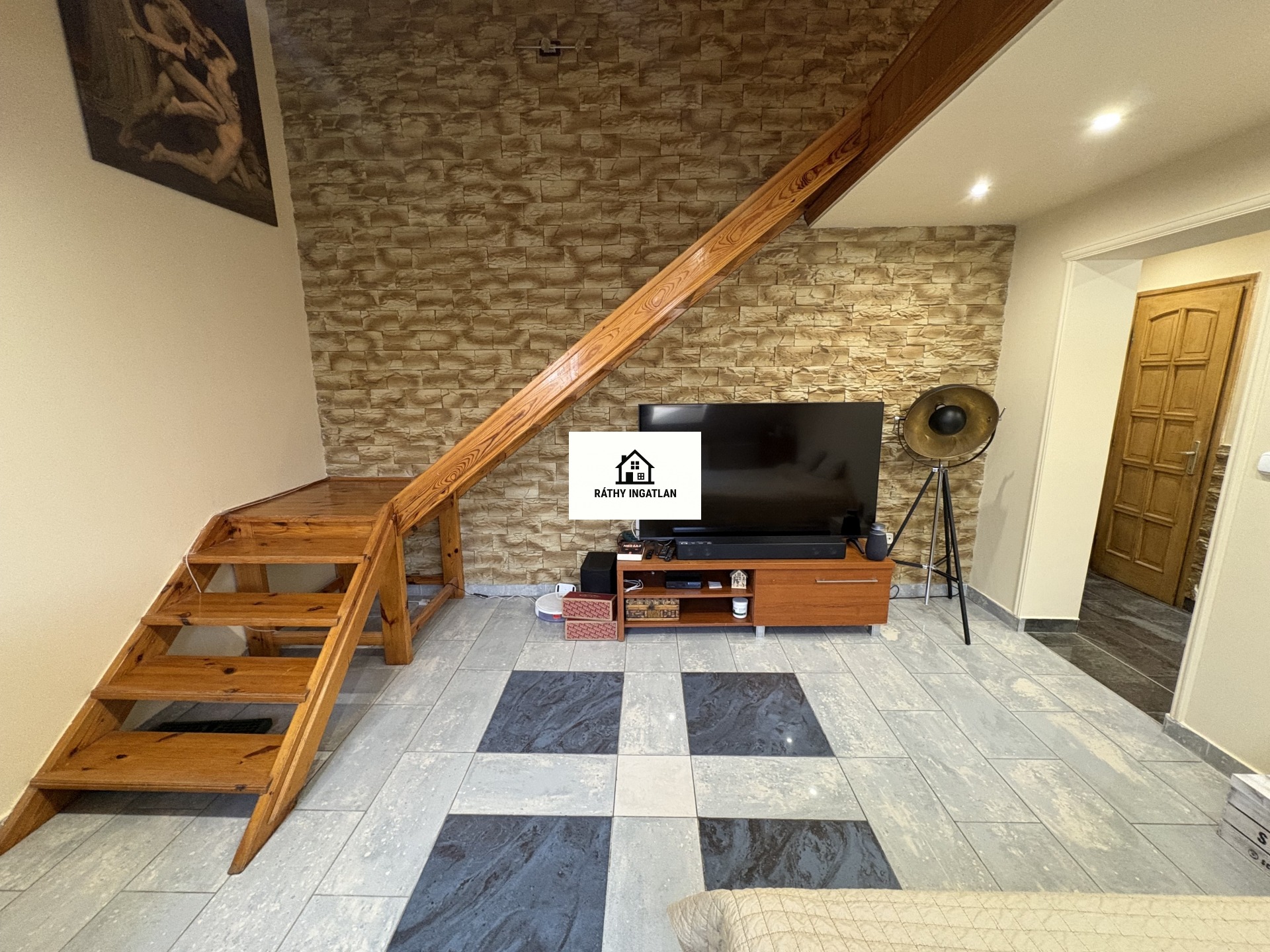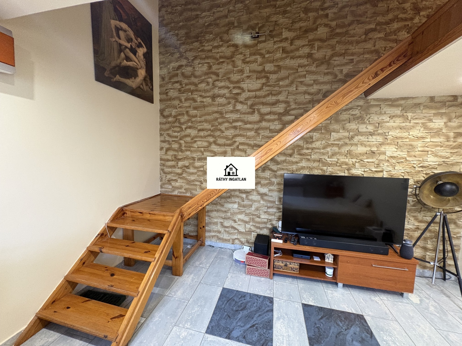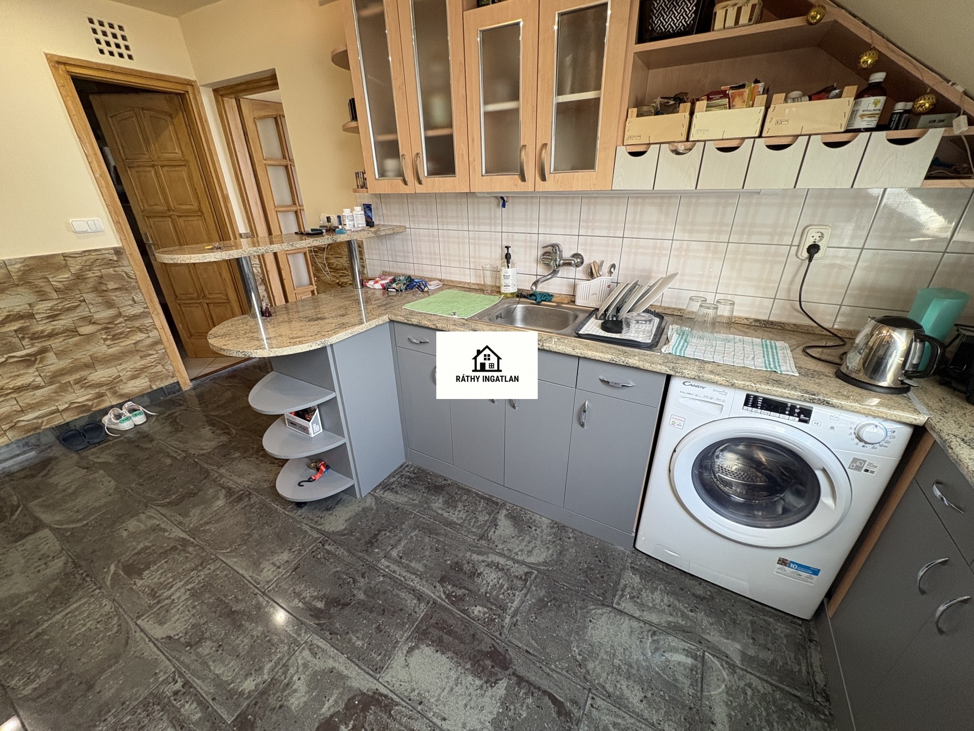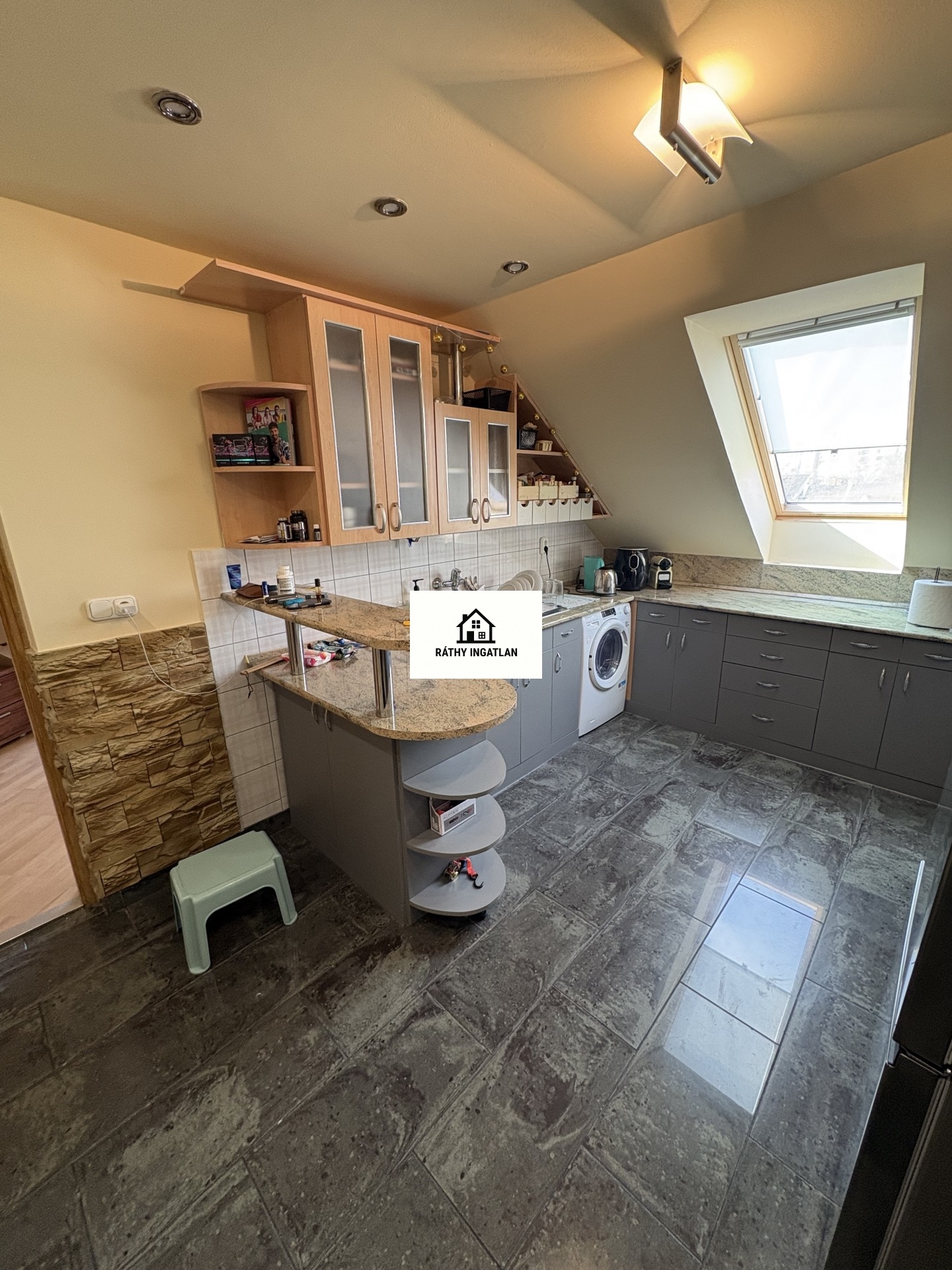 - Elosztása: Alsó szinten: előszoba, konyha, fürdőszoba+ Wc (külön helyiségben van ) nappali+ 1 szoba. Tetőtérben: 1 szoba van. Erkélye nincs a lakásnak.