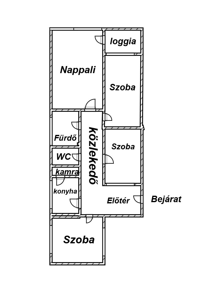 - Elosztása: Előszoba, 3 szoba, nappali, konyha, kamra, fürdőszoba+ Wc ( külön helyiségben van ) loggia.